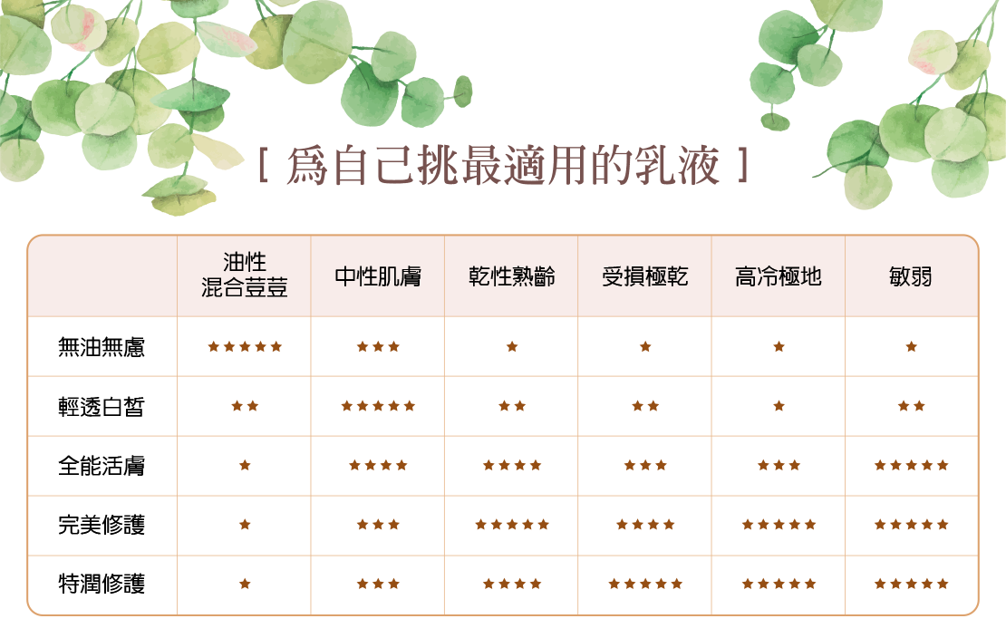 ※ 對於極度受損及乾燥肌膚,有更多的關懷