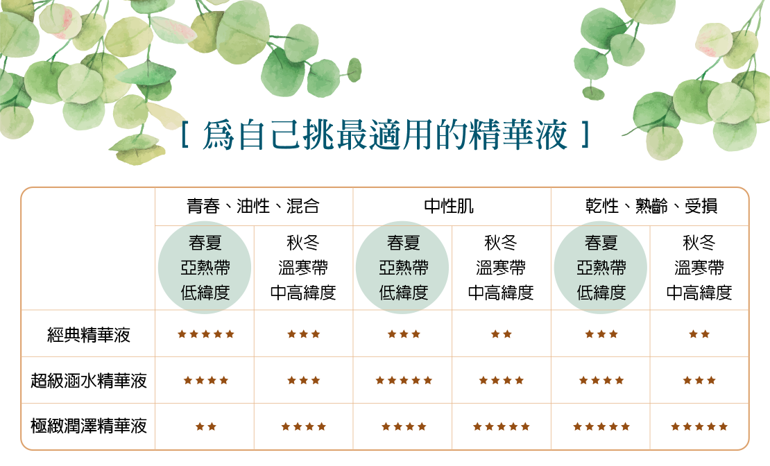 各類型膚質均適用。推薦中乾性、乾燥、熟齡、敏弱受損類型肌膚使用。