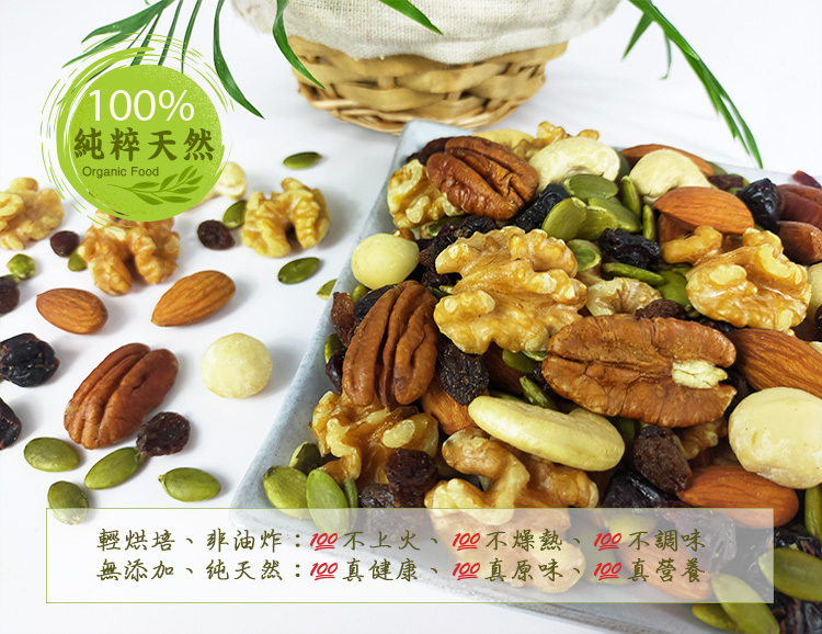 2.自家輕烘培、非油炸,鎖住堅果和果乾的純粹原味,堅果極鮮飽滿、油脂勻稱;蔓越莓與葡萄果乾帶有微酸的自然清甜味,吃了不燥熱不易上火。